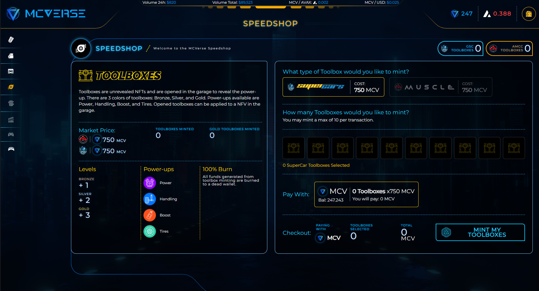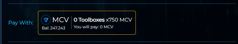 Toolboxes are minted using $MCV tokens.